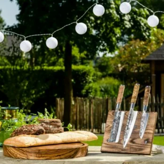 Cel mai versatil cuțit din bucătărie și indispensabil pentru fiecare bucătar (amator). La îndemână pentru tăierea cărnii, peștelui sau legumelor, dar ideal și pentru tocat fin ierburile. Forma lamei cuțitului de bucătar Forged VG10 este tipică bucătăriei europene. Spre deosebire de majoritatea seriei Forged Brute, cuțitele Forged VG10 sunt fabricate din oțel japonez VG10 cu un nivel de duritate de 60 Rockwell. Toate cuțitele Forged VG10 sunt forjate manual în 5 straturi, au o grosime a lamei de 2 mm și un unghi de tăiere de 18 grade. Îl livram ambalat intr-o cutie de lux din lemn.