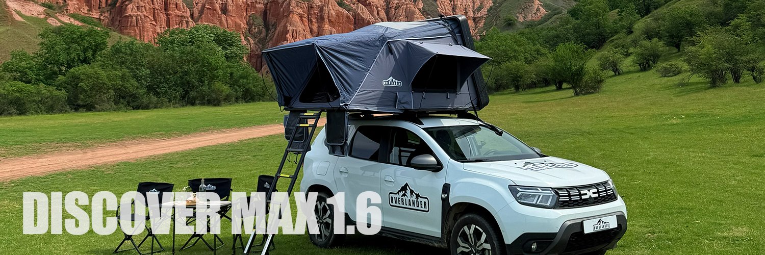 Overlander Discover Max 1.6 este cortul auto ideal pentru pasionații de overlanding și camping off-road. Considerat „nava amiral” a brandului OVERLANDER, acest model se remarcă prin practică, confort și ușurință în utilizare. Îmbunătățit semnificativ față de versiunile anterioare și confirmat de clienți în utilizarea reală din camping, Overlander Discover Max 1.6 oferă durabilitate, stabilitate și o experiență plăcută chiar și în condiții dificile.